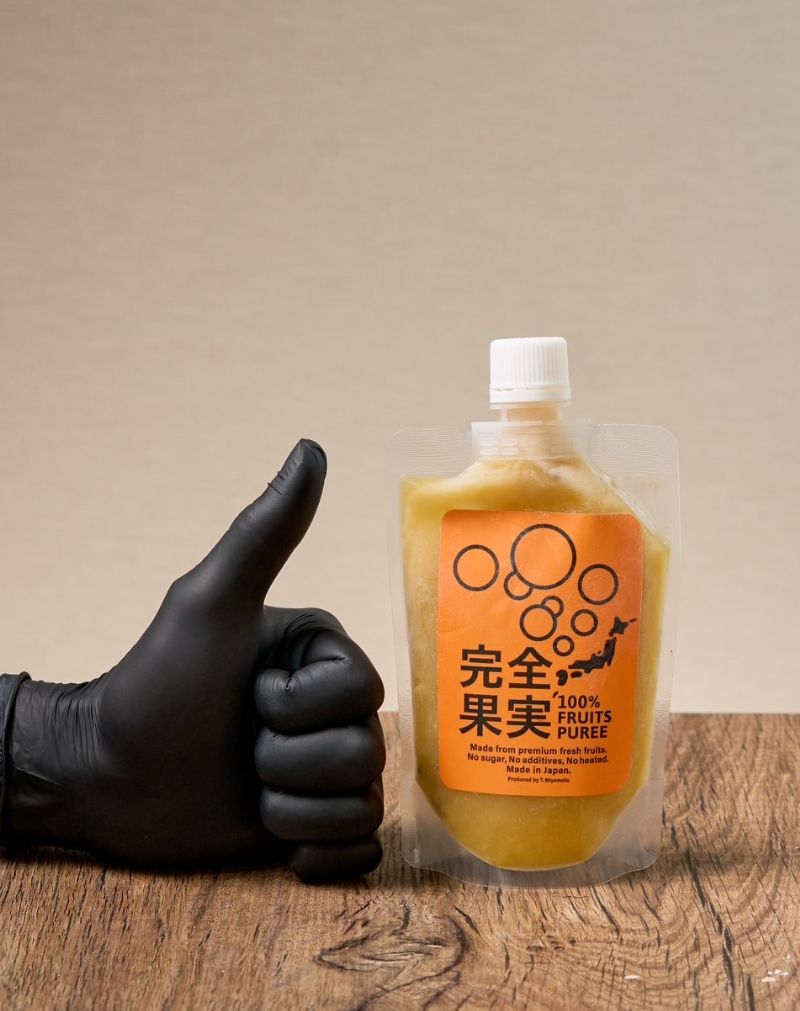 人気グルメ通販サイトのdancyu.comやうまいもんドットコムなどで人気を集めている、フルーツピューレ「完全果実」。果物をまるごと搾った、まるでジュースのように飲めるという一品です。